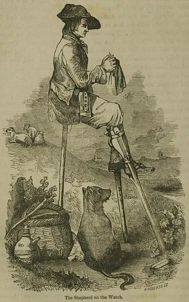The shepherds made their own stilts from pine or ash and the ties from leather. They always carried a long stick, called a paou. This allowed them to balance while walking and proved useful when standing still as it acted as a third leg.