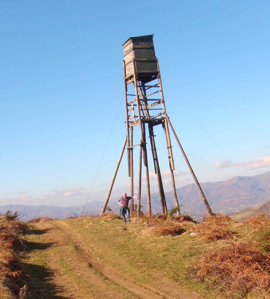 The two traditional methods of hunting palombe here are with shotguns or, much more complicated, with nets. This link http://www.gourmetfly.com is to a company which organises hunting and fishing trips in France. They published an article which explains the origin of this practice. A monk from Roncevaux Abbey some 700 years ago observed that hawks were waiting for the pigeons as they flew through the passes. He noticed that the pigeons were too tired to gain altitude when attacked but dived down and flew close to the ground. If you’re ahead of the game you will have realised by now that the Basques use the hawks’ method by forcing the palombes down towards the ground and into waiting nets.