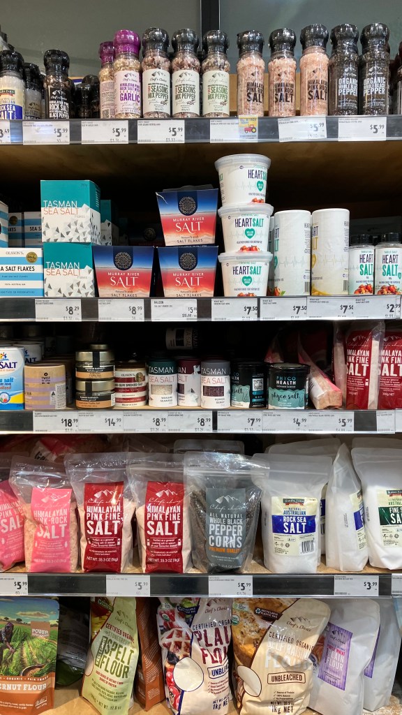 Our local store, which sells a vast range of products, from rolled oats to Pinto beans, stocks three varieties of salt: