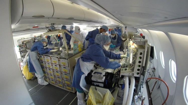 The hospitals in the Alsace region in the north east were soon overstretched. The French military used its airborne hospital, for the first time for civilians, taking patients from Mulhouse to Bordeaux. Ambulances, helicopters and aircraft carried the most serious cases to hospitals which had the medication and equipment necessary to treat serious them.